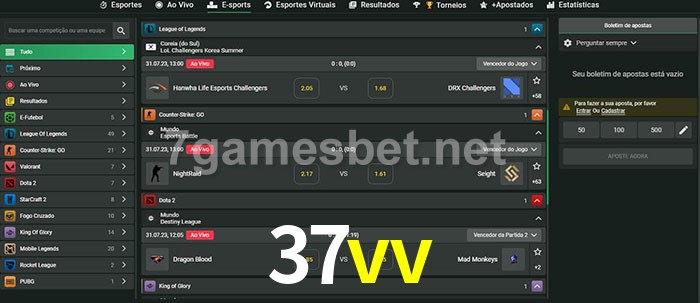 O 37vv oferece uma grande seleção de opções de apostas em e-sports com probabilidades competitivas